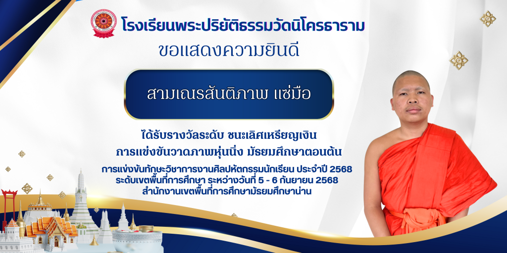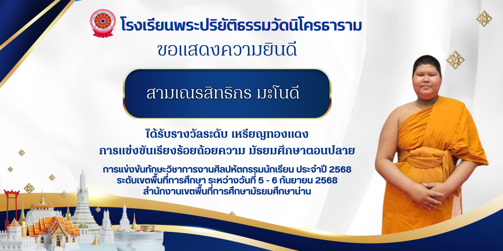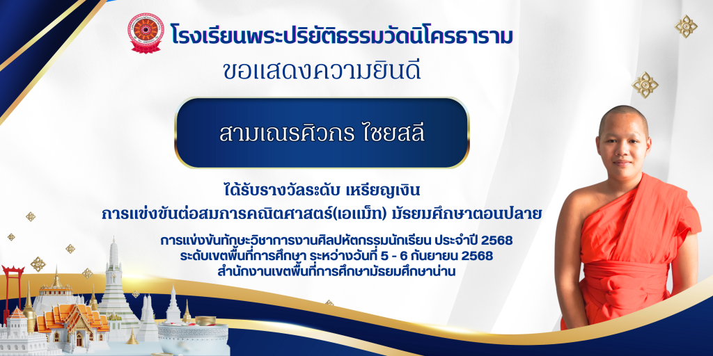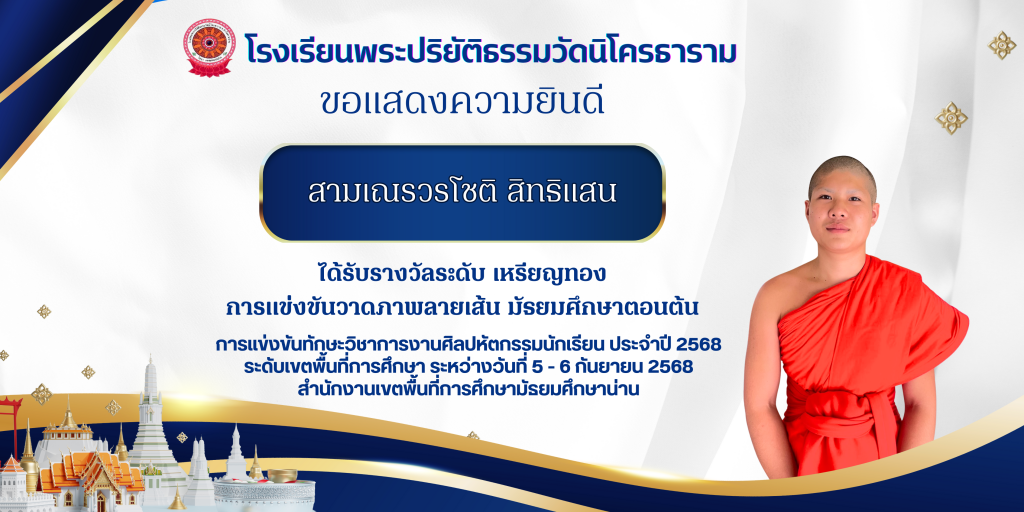 ขอแสดงความยินดีกับสามเณรทุกรูป ได้รับรางวัล การแข่งขันทักษะวิชาการงานซิลปหัตถกรรมนักเรียน ประจำปี 2568