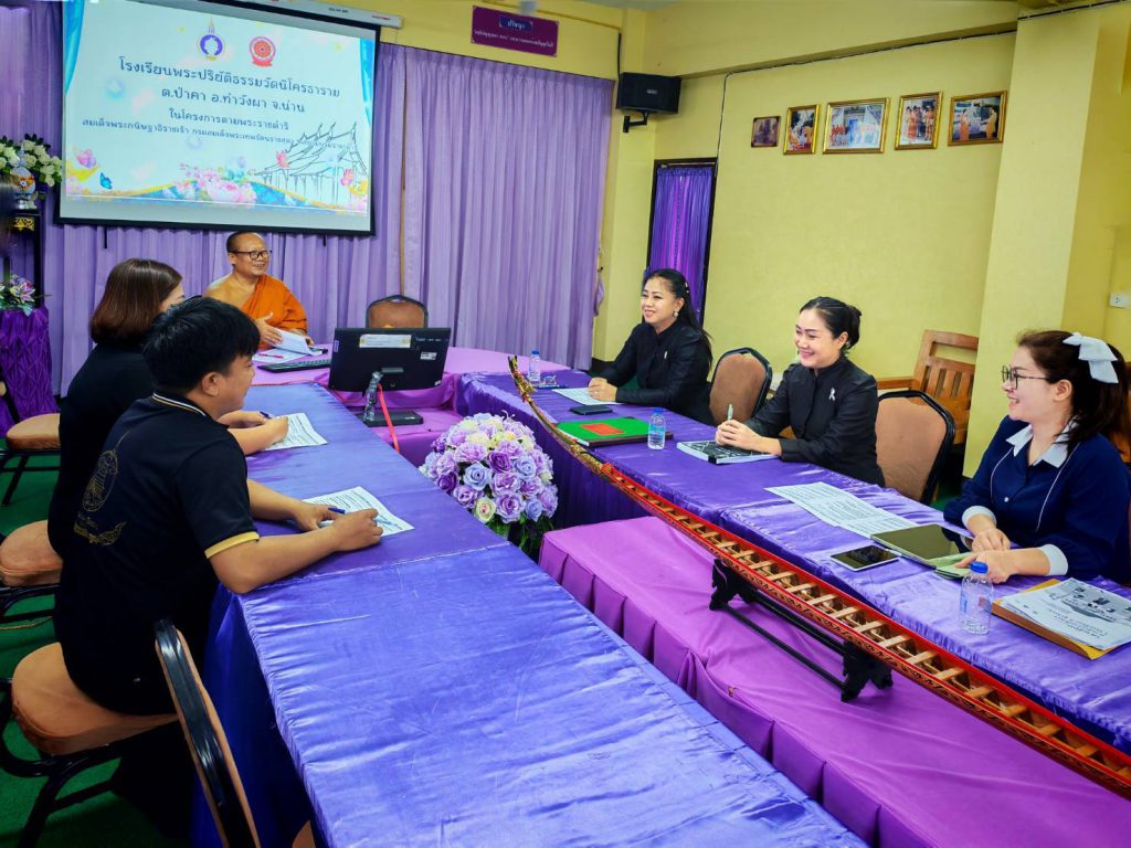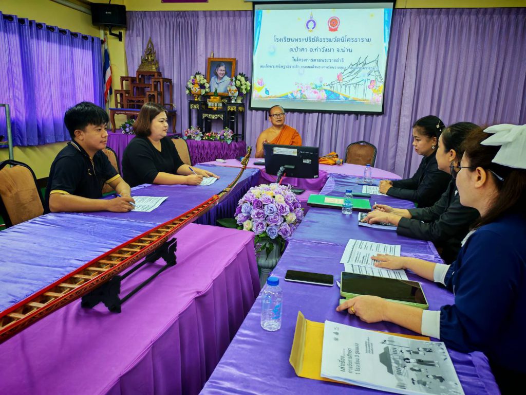 วันที่ 31 ตุลาคม 2568 นางนัฑวิภรณ์ จันต๊ะพรมมา ผู้อำนวยการสำนักงานเขตพื้นที่การศึกษามัธยมศึกษาน่าน มอบหมายให้ นางพัทธนันท์ พิพิธนวงค์ รองผู้อำนวยการสำนักงานเขตพื้นที่การศึกษามัธยมศึกษาน่าน พร้อมด้วยเจ้าหน้าที่กลุ่มส่งเสริมการจัดการศึกษา ลงพื้นที่ให้แนวทางการจัดการศึกษา ที่ยืดหยุ่น 1 โรงเรียน 3 รูปแบบ สำหรับสถานศึกษาขั้นพื้นฐาน ให้กับผู้บริหาร ครู และบุคลากรทางการศึกษา โรงเรียนพระปริยัติธรรม ณ โรงเรียนพระปริยัติธรรมวัดนิโคธาราม อำเภอท่าวังผา จังหวัดน่าน